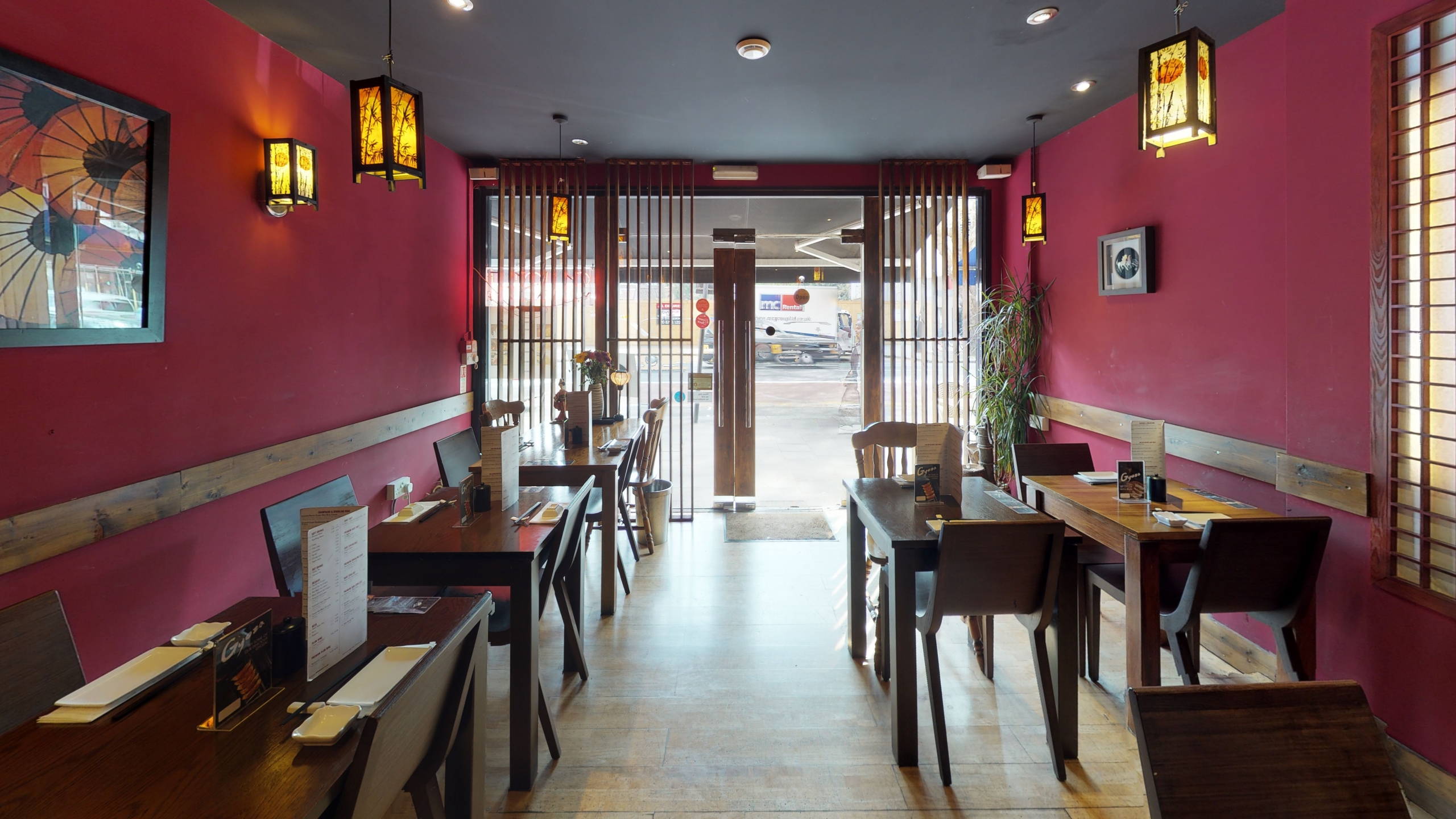Paper lanterns and Japanese touches adorn this restaurant serving sushi, noodles and bento boxes.